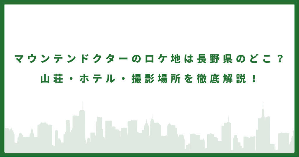マウンテンドクターのロケ地は長野県のどこ?|山荘・ホテル・撮影場所を徹底解説!
