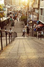 ここは、ドラマ内の街並み・雰囲気シーンに使われ、揚げ物の匂い、商店の呼び声、夕暮れの「夕やけだんだん」の階段です。